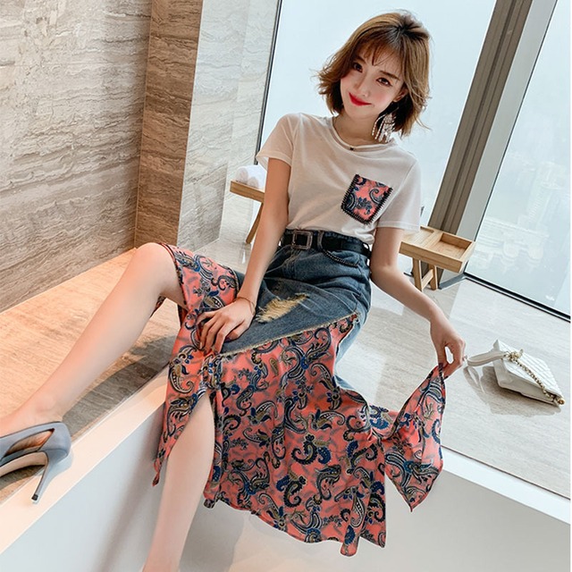 フレッシュなTシャツとおしゃれなデニムスカートのセットアップが登場! 鮮やかなブルーカラーのデニムが高級感を演出してくれ、オフィスシーンでもパーティーシーンでも活躍の幅広いアイテムです。 このセットアップは、デニム好きな女性必見です。 飽きのこない、流行に疎い人でも楽しめるデザインに仕上がっています。 自分らしさをアピールするおしゃれなスタイルを手軽に楽しみましょう。 ※ベルトは付いておりません。