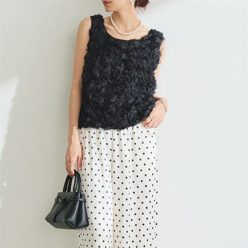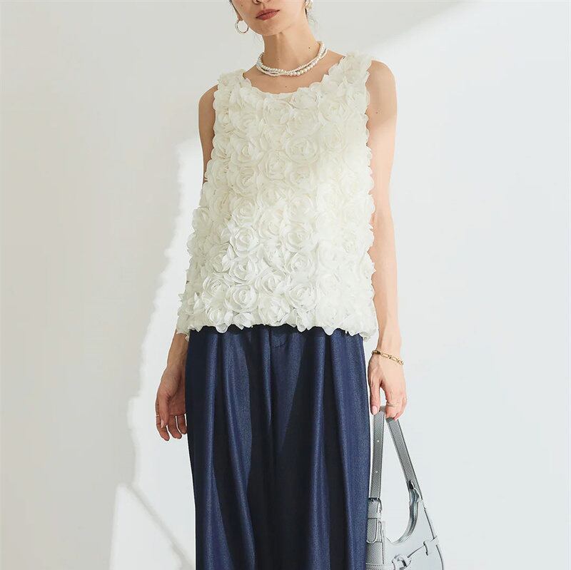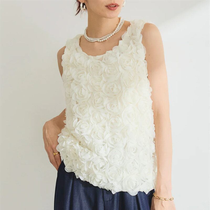 このトップスは、魅力的な花柄が凹凸生地で表現された一枚で、オシャレな着こなしを実現します。