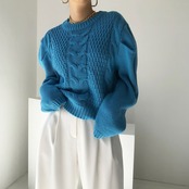おしゃれな鮮やかブルーのニットセーター!