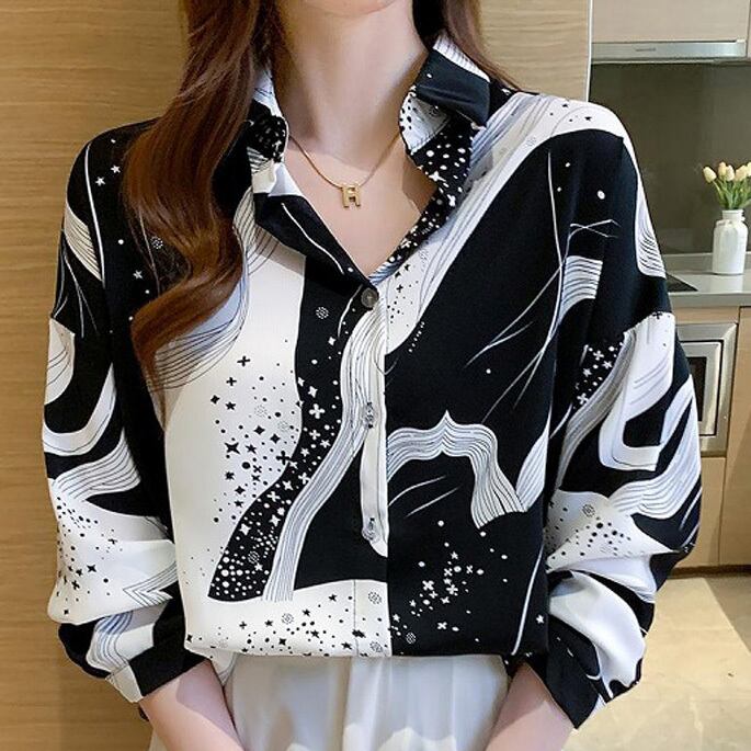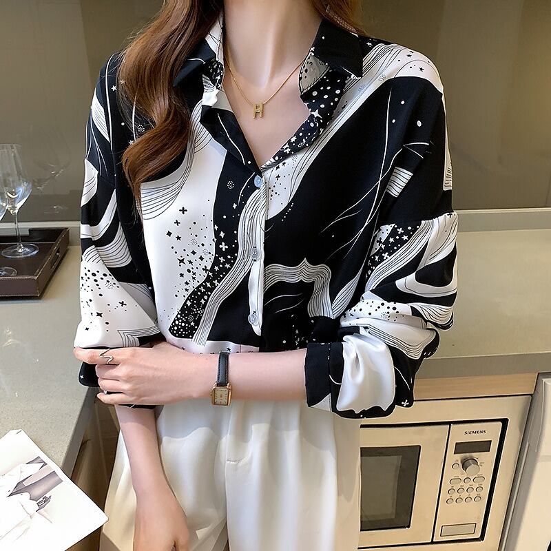 ブラックとホワイトの色のコントラストが美しい、シャツ ブラウス バイカラーです。