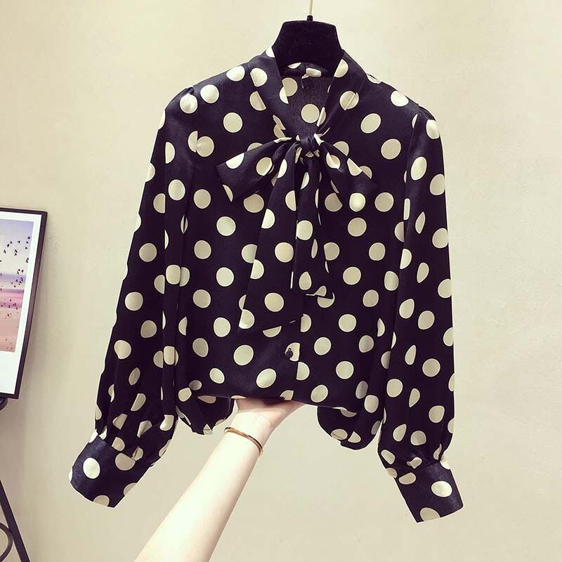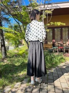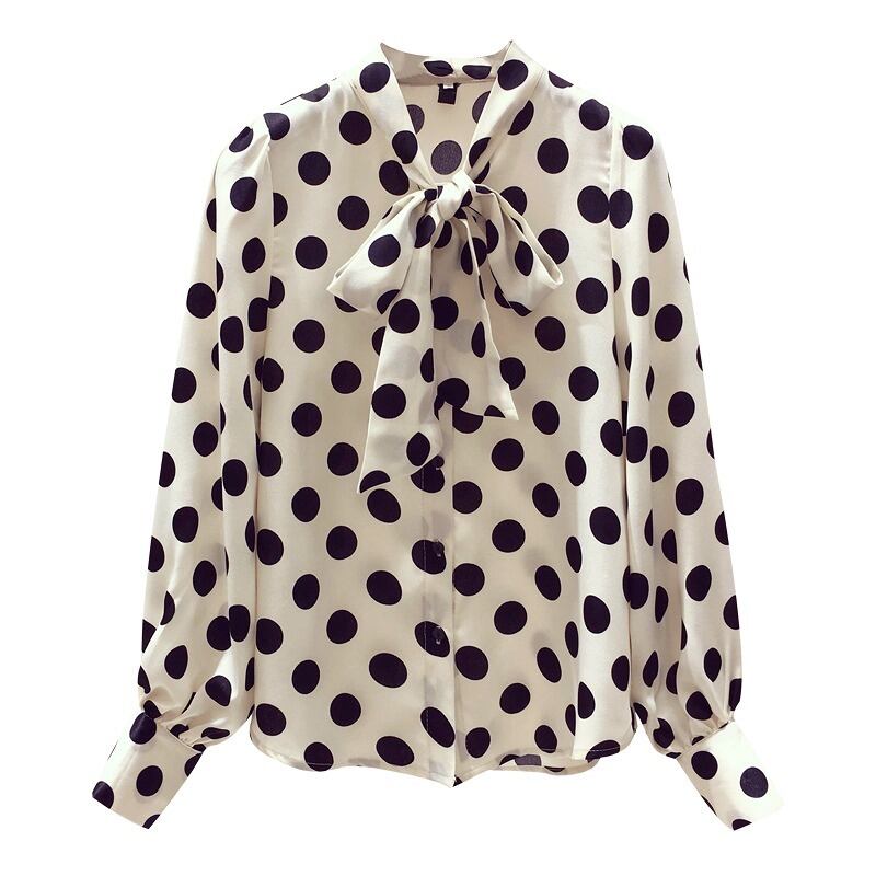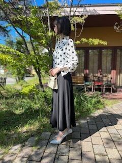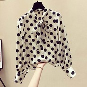 おしゃれなスタイルを演出する、ブラック・ホワイトドット柄のボリューム袖シャツブラウスの登場です。