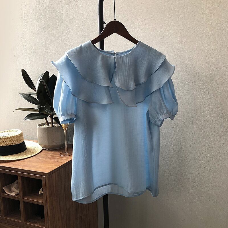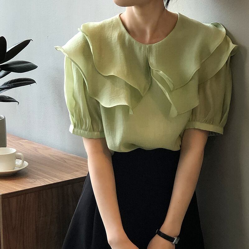 優雅で女性らしい印象の、半袖フリルブラウスが登場です。