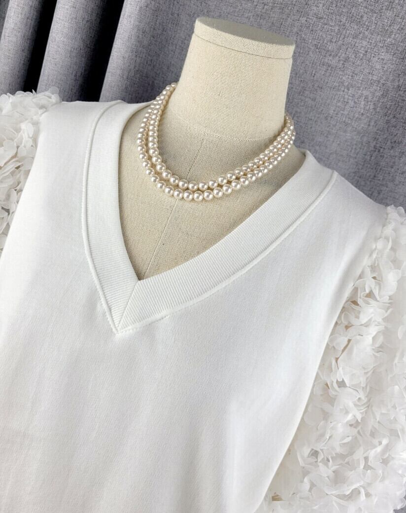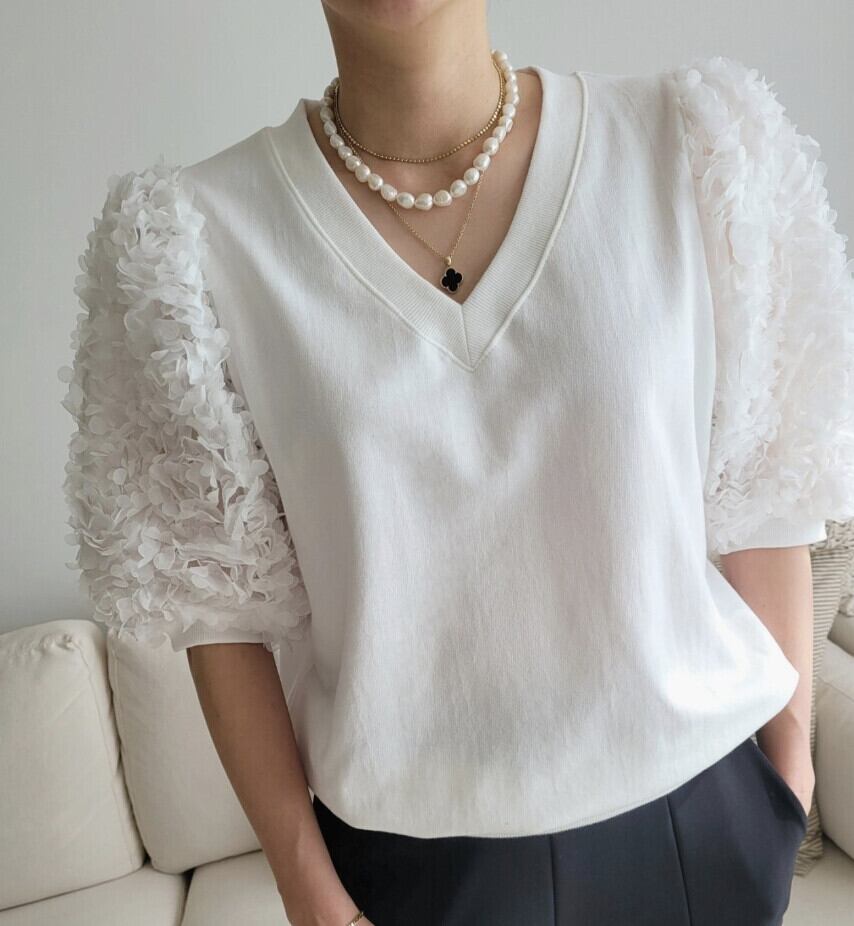 ふんわりとしたフラワーモチーフがとっても可愛い、フラワーモチーフ袖のトレーナーが登場!